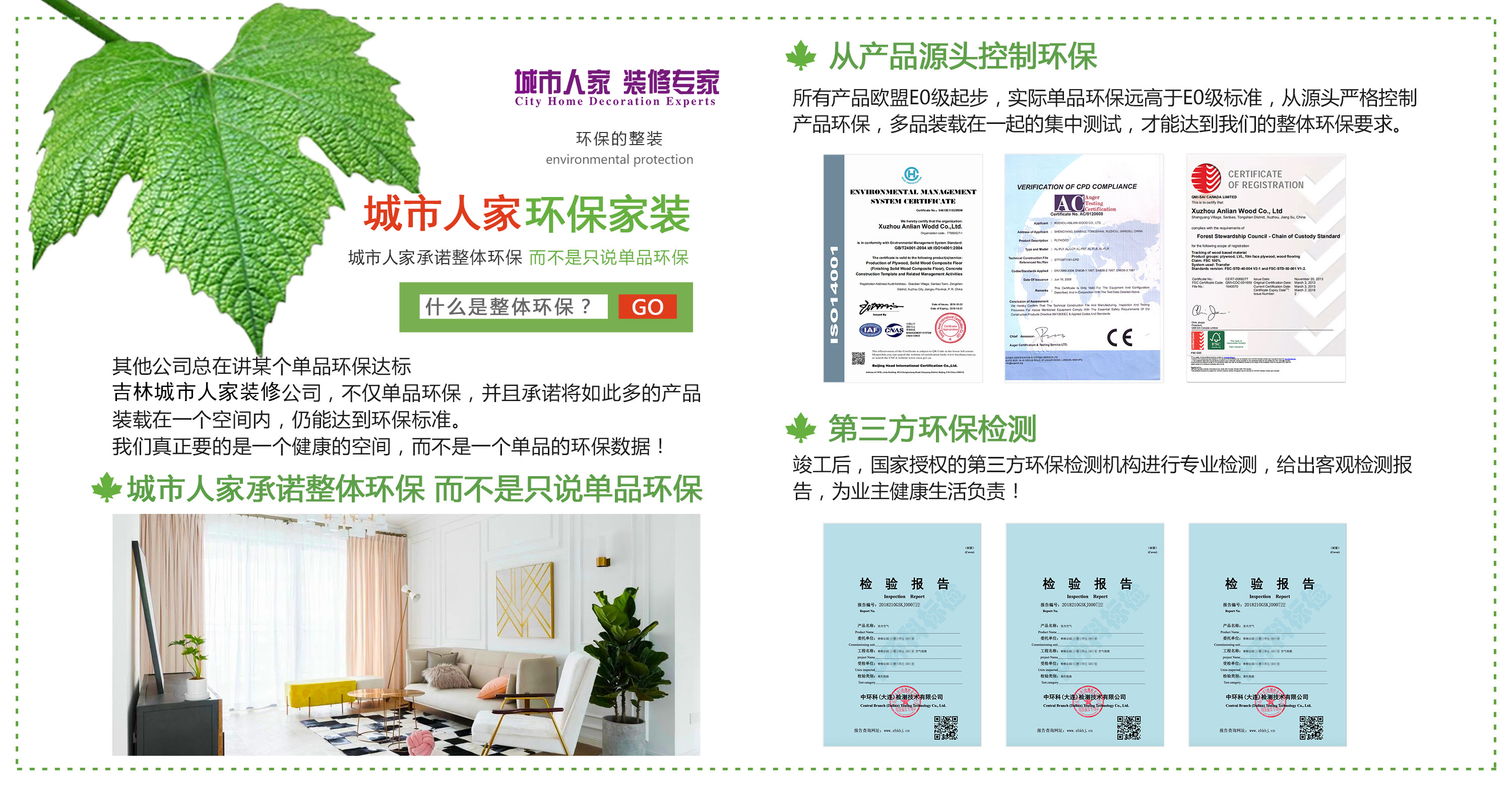 環(huán)保整裝歐盟E0級(jí)環(huán)保標(biāo)準(zhǔn) 從產(chǎn)品源頭控制環(huán)保性能 環(huán)保整裝 歐盟E0級(jí)環(huán)保標(biāo)準(zhǔn) 從產(chǎn)品源頭控制環(huán)保性能 |